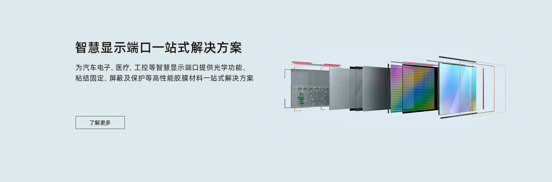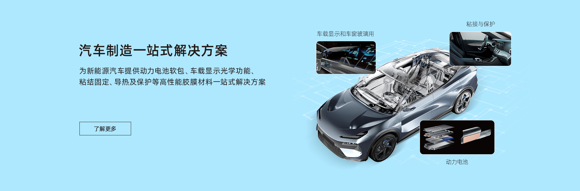 致力于為汽車制造、消費電子、智慧顯示端口等行業客戶提供包括新能源材料、電子功能材料、光電顯示材料、有機硅材料在內的產品研發、生產、銷售于一體化服務,建立了專業的市場營銷與技術服務團隊,為客戶提供高性能膠膜材料一站式解決方案。